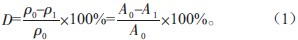 由圖2 可知,溶液濃度ρ與吸光度A 表現(xiàn)出良好的線性關(guān)系,因此,孔雀石綠溶液的脫色率D 可由式(1)得出: