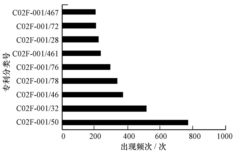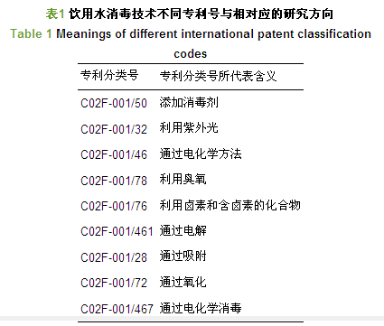 專利申請更多反映技術應用研究情況.專利檢索選取Web of Science中德溫特世界專利索引數據庫,在專利分類為C02F*下進行.專利檢索式為:((“drinking water” AND((“disinfect*” AND(“ozone” OR “chlorin*” OR UV))OR “disinfect*”))OR((((“disinfect*” AND(“ozone” OR “chlorin*” OR UV))OR “disinfect*”)AND water)NOT(“waste* water*” OR “atmosphere” OR “circulat* water” OR “deionized water” OR “wastewater” OR “industr*” OR “sewage”))).