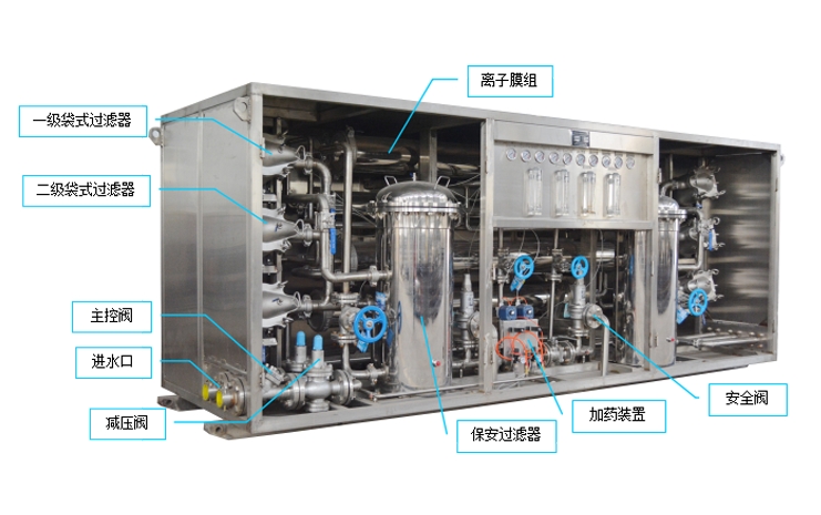 乳化液配比給水反滲透裝置用于向綜采工作面乳化液泵站提供合格的除鹽水。