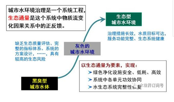 現今的水環境治理基本是灰色水系統,而我們希望的是生態水環境,為此城市水務系統一定是一個復雜的系統工程,要以生態通量為基本要素,實現安全、低耗、高效的單位功能協同。