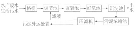 該廠于1990年建成,利用兼氧好氧生物法處理廢水。處理工藝流程如圖1所示。