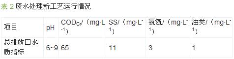自新工藝正常運(yùn)行1a多以來,廢水處理效果良好,水質(zhì)監(jiān)測(cè)情況如表2所示。