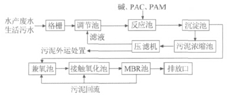 該企業(yè)廢水首先經(jīng)過格柵處理,除掉魚渣、包裝帶等較大的懸浮物,以保證后續(xù)處理的穩(wěn)定運(yùn)行及提升泵的運(yùn)轉(zhuǎn);出水進(jìn)入調(diào)節(jié)池進(jìn)行均質(zhì)均量,調(diào)節(jié)廢水的水質(zhì)水量,避免對(duì)后續(xù)生化處理造成較大的負(fù)荷變化,保證生化處理正常運(yùn)行;均質(zhì)均量后,泵入絮凝反應(yīng)池,充分反應(yīng)后的廢水流入沉淀池進(jìn)行泥水分離,去除大部分SS和部分COD、氨氮,污泥接至污泥池,上清液順序流入兼氧池和接觸氧化池,在兼氧池中大分子有機(jī)物被兼氧菌水解為易降解的小分子有機(jī)物,降低了廢水中的有機(jī)物濃度,并提高可生化性;接觸氧化池內(nèi)的好氧菌不斷攝取廢水中的有機(jī)物作為營養(yǎng)加以吸收,通過代謝反應(yīng),小分子和溶解性有機(jī)物被降解,一部分被氧化為比較終產(chǎn)物CO2和H2O,另一部分轉(zhuǎn)化為新的有機(jī)體使細(xì)胞增殖。廢水隨后進(jìn)入MBR系統(tǒng),由于膜的高效分離作用,分離效果遠(yuǎn)好于傳統(tǒng)沉淀池,能夠穩(wěn)定獲得優(yōu)質(zhì)的出水水質(zhì)。
