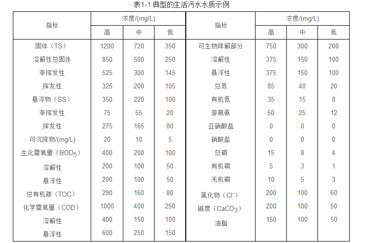典型的生活污水水質(zhì)變化大體有一定范圍,可參見表1-1。