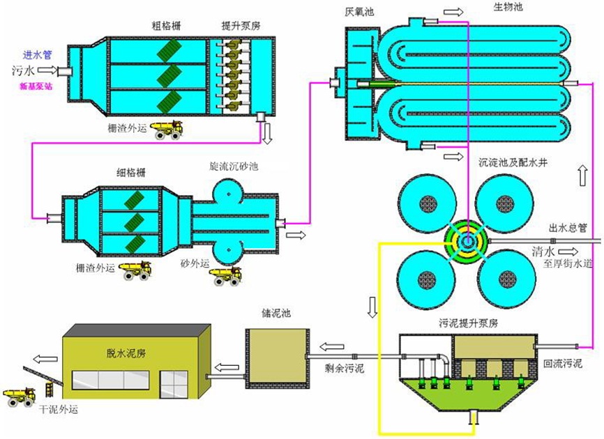 氧化溝又名氧化渠(oxidation ditch,簡(jiǎn)寫O.D.),因其構(gòu)筑物呈封閉的溝渠形而得名,實(shí)際上它是一種改良的活性污泥法。