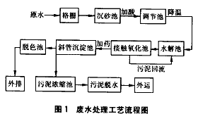 一般情況下,接觸氧化池的出水CODCr和SS還比較高,在進入斜管沉淀池時要投加PAC和PHP,投加量可根據經驗或做小試確定。當水質變化較大時,要加大PAC和PHP的投加量。沉淀池出水色度有時偏高,還要在脫色池中投加漂白水進一步去除色度。因為沉淀池采用斜管,表面負荷較小,但出水中SS一般能達標。沉淀池中的污泥排入污泥濃縮池中濃縮,再經板框壓濾機脫水。